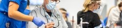 In the initial two years, our dental students collaborate closely with seasoned preclinical faculty to develop critical-thinking abilities and hone dental procedural skills on lifelike mannequins within the state-of-the-art CDMI Simulation Clinic.