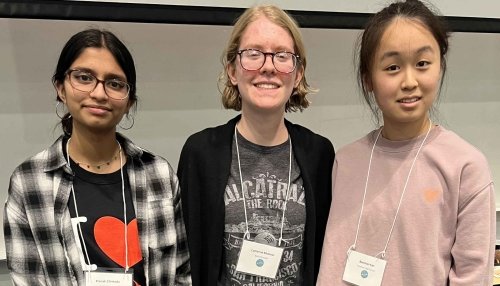 Pranati Chintada (L), Catherine McInnes (M), and Baochan Fan (R) were the top three finishers in the 24th Annual Arizona Regional Brain Bee at Midwestern University on February 8th.