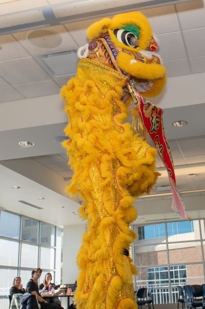 Lion dancers delighted Midwestern University students, faculty, and staff in the Commons cafeteria on the Downers Grove Campus, dancing and weaving their way among the tables in honor of the Lunar New Year. The lion dancers were dressed to mark the Year of the Dragon. The Asian Healthcare Association (AHA) and Student Services hosted the event.