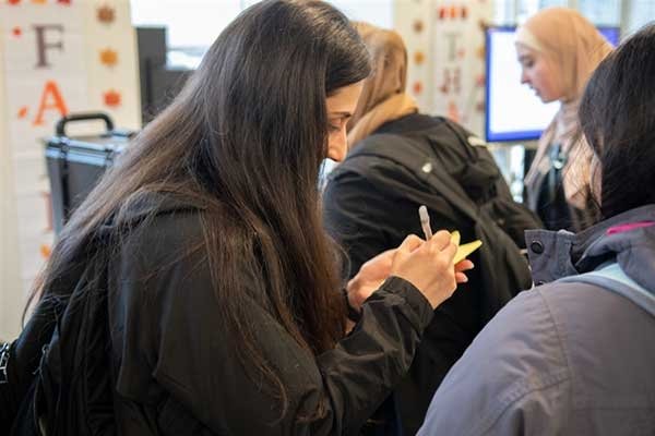 At an event to commemorate National First-Generation College Celebration Day, several first-generation students attended to learn more about the services and support provided by Midwestern University. There was a display board of stars with shared experiences of what makes the first-generation experience a strength, and students continually added their stars. The event was open to everyone, and students, faculty, and staff stopped by to learn more about the first-generation identity.