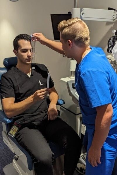 The students also learned to adapt to a new environment and performed eye exams in a room full of colleagues. They learned to adjust to this situation, which was beneficial for the students. Phillip said, “It was a different setting than we’ve been in. Usually, we know where everything is. We have never done an exam in a room full of people.” Grace added, “Normally, it’s just you and a patient.”