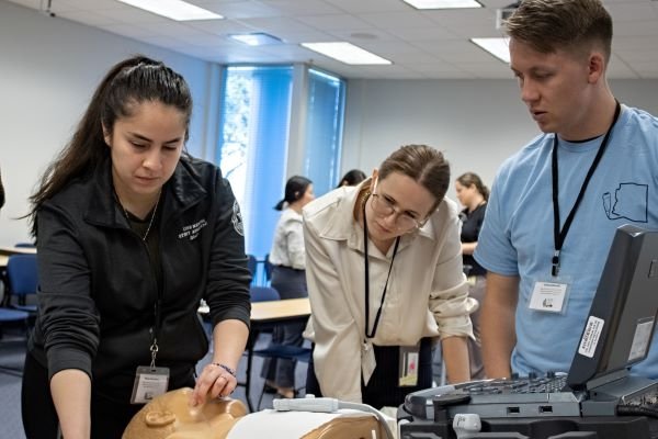Podiatry student Remi Drake (AZCPM ’26), Ultrafest Co-Coordinator of the Ultrasound Student Interest Group, said, “I found through doing workshops with students that ultrasound is what I will show to patients to understand their own anatomy and guide treatments. I view ultrasound as what my future practice will look like.” Medical student Christina Mortenson (AZCOM ’26), President of the Ultrasound Student Interest Group, added, “All of our classmates will be in the field in less than two years. We have ultrasound as a skillset, and we access it as part of our curriculum and as a club. All of us are eager to learn and change the landscape of what medicine is going to be. Ultrasound is used in every practice and in every single specialty.” Medical student Mitchell Rentschler (AZCOM ’26), Ultrafest Co-Coordinator of the Ultrasound Student Interest Group, agreed, noting that, “a lot of the workshops were procedures-based and showed the business aspect of healthcare practice, which is an additional benefit to classroom learning.