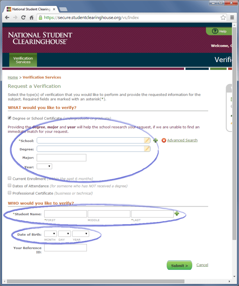 If we cannot verify a degree, the National Student Clearinghouse will cancel your payment. You may resubmit your verification request, assuring that all required information is provided.